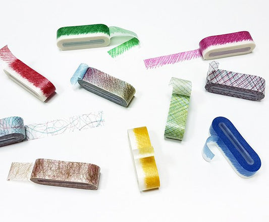 Colorful and simple, MT tape can be torn by hand and is easy to reposition. The tape can be used on paper, objects and walls. MT is semi-transparent so it can be especially pretty when it's layered, it’s also easy to write on so it’s handy for making notes or messages.