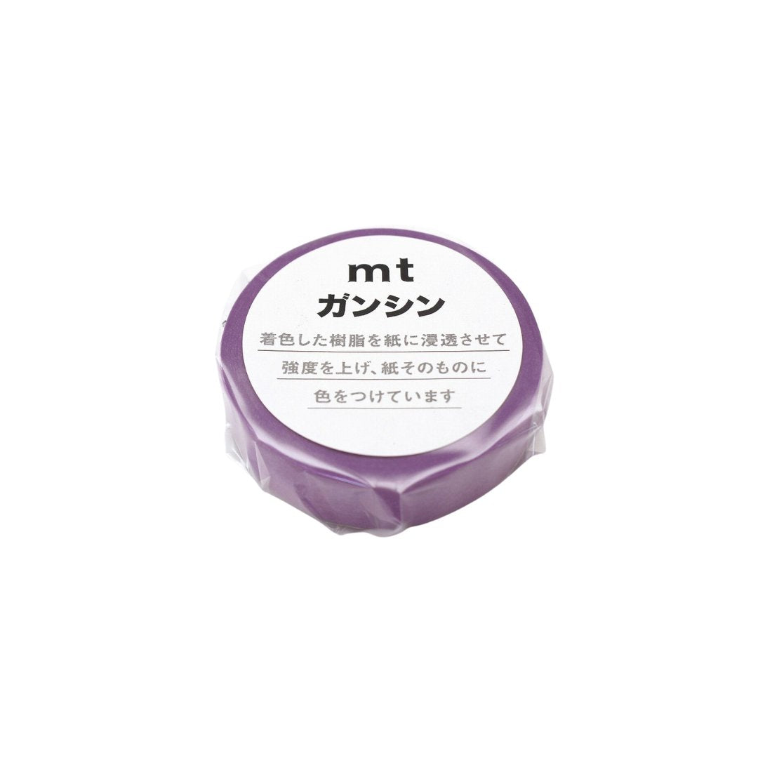 This is MT Ganshin Washi Tape in Blue-Purple. Crafted using a specialized manufacturing method, this tape features impregnated paper soaked in colored resin, ensuring durability and vibrant coloration. With a width of 15mm and a length of 20m, it provides ample coverage for various crafting endeavors.