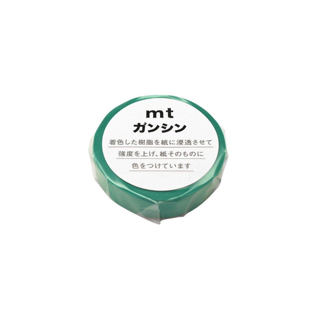 This is MT Ganshin Washi Tape in Light Green. Crafted using a specialized manufacturing method, this tape features impregnated paper soaked in colored resin, ensuring durability and vibrant coloration. With dimensions of 15mm width and 20m length, it provides ample coverage for various creative endeavors.